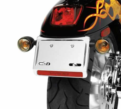 Zeigen Sie, was Sie haben. Diese verchromte Abdeckung kann über der serienmäßigen Nummernschildhalterung am Fender angebracht werden.