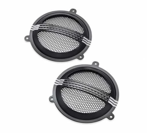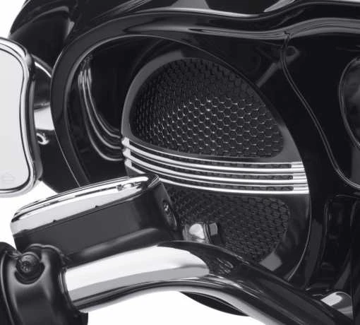 Schlägt einen neuen Ton an. Defiance Lautsprechergitter schmiegen sich an originale oder Boom! Audio Stage I Lautsprecher. Die mit einem Wabenraster und dünnen horizontalen Leisten versehenen Defiance Lautsprechergitter schützen die Lautsprechermembran und sorgen für einen Hauch Luxus am Soundsystem des Bikes.