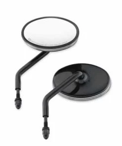 - Diese spiegelglatten, gewölbten Gehäuse und mit feuchtglänzenden, schwarzen Oberflächen ausgestatteten, kompakten Billet Spiegel widerspiegeln einen neuen, modernen Stil