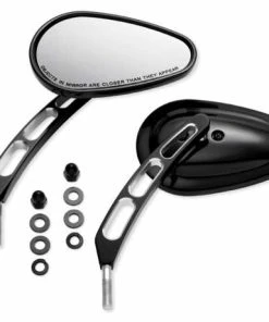 Der geschlitzte Ausleger dieses Custom-Spiegels ist die ideale Ergänzung für die Hand- und Fußhebel der Edge Cut Kollektion.