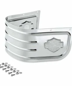 Diese polierte und verchromte Fenderschürze aus starrem Stahl ersetzt die originale Verkleidung aus Aluminium.