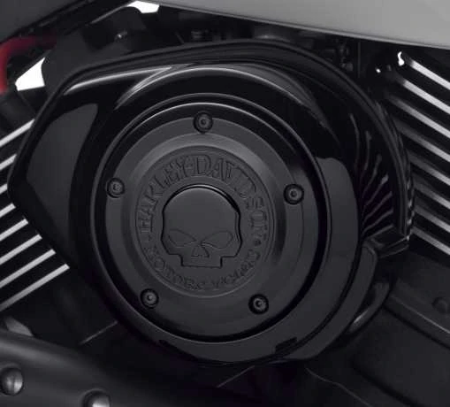 Die Willie G Skull Collection wechselt auf die dunkle Seite. Völlig in Schwarz getaucht, verleihen der Totenkopf und der Harley-Davidson Schriftzug dem Bike eine dunkle Note.