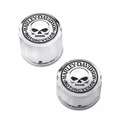 Passend für Harley-Davidson Softail Modelle ’00-’07. Diese Mutternkappen für die Hinterachse ergänzen die passenden Vorderachsmutternkappen.