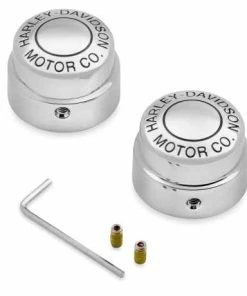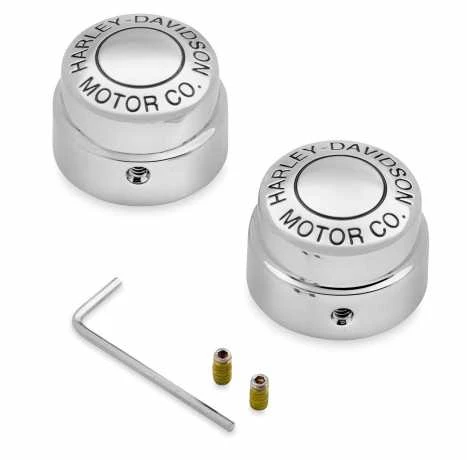 Gegossene und verchromte Kappen mit schwarzem “Harley-Davidson Motor Co.” Logo.