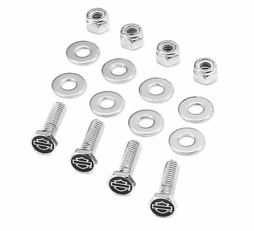 Verchromtes Montagekit mit Bar & Shield Logo vor schwarzglänzendem abgesetztem Hintergrund.